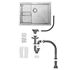 INCLUIDO EN EL PAQUETE: 1 x fregadero cocina 1 seno, 1 x cesta de desagüe extensible, 1 x sistema de desagüe con rebosadero, 1 x clips de fijación, 1 x plantilla de corte, 1 x guantes, 1 x manual de instrucciones. Este fregadero multifuncional se entrega con todos los accesorios necesarios. Completa tu instalación optando por nuestro dispensador de jabón y grifo a juego.