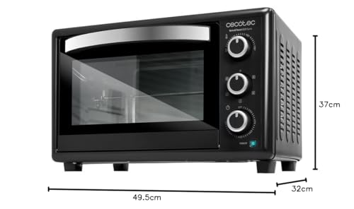 Especificaciones: Cecotec Horno de sobremesa Bake&Toast 3090 Black Gyro, 30 L, 1500 W, 12 Funciones diferentes, Incluye rustidor giratorio, Luz interior, Bandeja recogemigas.