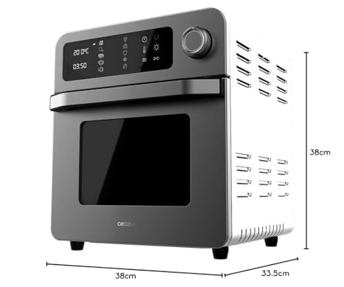 Especificaciones: Cecotec Horno Freidora Bake&Fry 1500 Touch. 15 Litros, 1700 W, Resultados más sanos, Pantalla táctil, 10 Menús predeterminados, Acero inoxidable, 60-230 º, Kit de Accesorios
