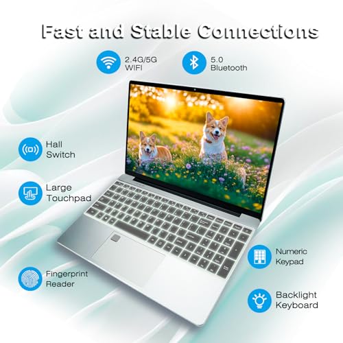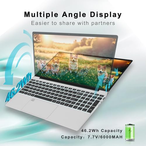 Especificaciones: Celeron N5095 – Laptop FHD de 15.6 pulgadas, procesador de cuatro núcleos DDR4 de 8 GB RAM 512 GB SSD, portátil con teclado retroiluminado y lector de huellas dactilares, WiFi 5, BT 5.0, USB