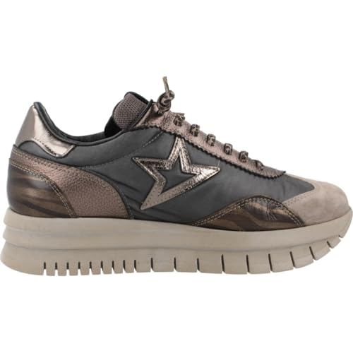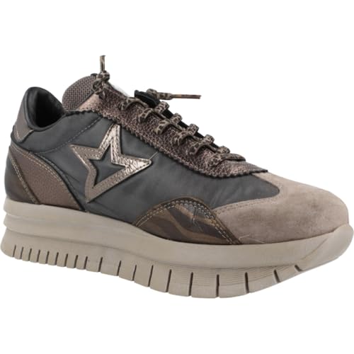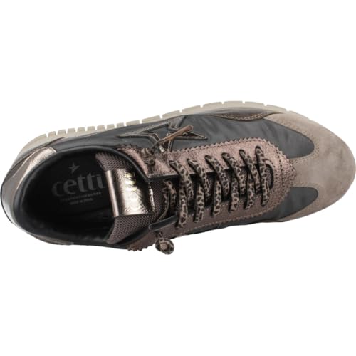 Las sneakers de ante y nylon con cordón elástico y adorno de estrella, junto con el detalle de animal print, y con plantilla extraíble y acolchada de la marca Cetti, son una excelente opción para quienes desean fusionar comodidad y estilo en su calzado. Fabricadas completamente en España y con materiales de primera calidad, estas zapatillas garantizan durabilidad y resistencia.