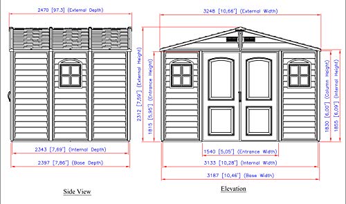 Especificaciones: Cobertizo de vinilo Duramax (30214-4) con laterales de madera V2 de 10 x 8 pies, color marfil y marrón