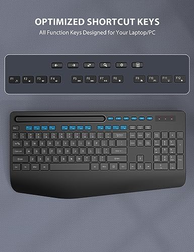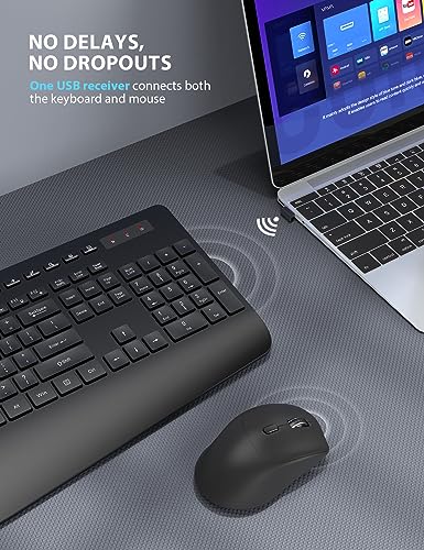 Combo de teclado y mouse inalámbricos, diseño ergonómico de tamaño completo con reposamuñecas acolchado, soporte para teléfono integrado, conectividad USB silenciosa de 2.4 GHz para PC, laptop