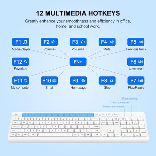 Experiencia de escritura silenciosa: las teclas de membrana suave proporcionan una experiencia de escritura silenciosa y cómoda, por lo que puedes escribir con confianza en un teclado inalámbrico diseñado para mayor comodidad, precisión y fluidez. El mouse inalámbrico adopta una tecnología de micromovimiento silenciosa, que es casi completamente silenciosa cuando se hace clic. Perfecto para espacios compartidos. No más preocupaciones por molestar a los demás.