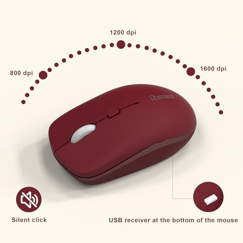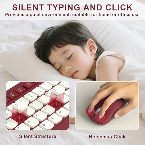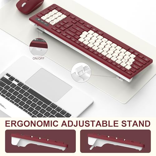 Combo de teclado y mouse inalámbricos, teclado inalámbrico de tamaño completo y mouse DPI ajustable, receptor USB de 2.4 GHz, teclado y mouse para PC, Windows, escritorio, laptop (rojo vino-B)