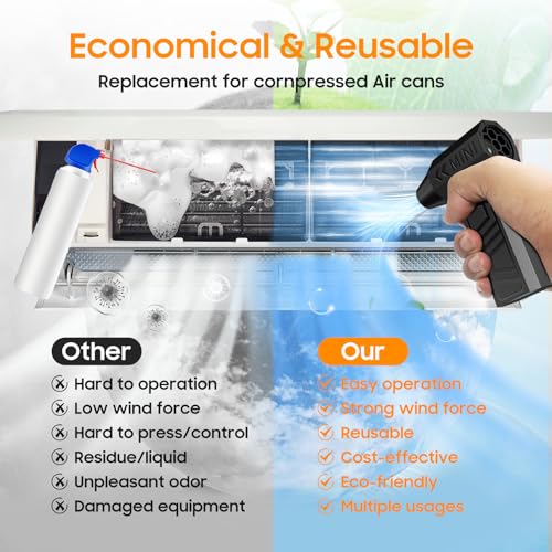 【The Perfect Replacement for Disposable Air Cans】Made from durable materials, the air blower offers a long battery life and can be reused more than 500 times. As a sustainable alternative to disposable compressed air cans, it saves you money while reducing environmental pollution