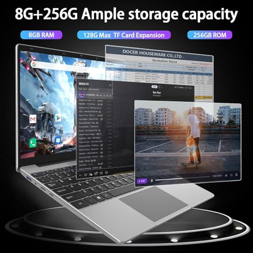 Capacidad suficiente de almacenamiento y portátil: funda ultrafina para computadora portátil Gezoon DDR4 de 8 GB y SSD de alta velocidad de 256 GB que te permite usarlo sin problemas incluso con el mantenimiento de múltiples archivos. Proporciona un gran espacio para el funcionamiento eficiente de la aplicación más compleja y multimedia. Pesa solo 2.86 libras, grosor de solo 0.83 pulgadas, para viajes de negocios o viajes.
