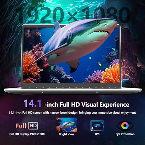 Experiencia visual cómoda: esta laptop Windows 11 Pro incorpora gráficos Intel UHD 600 de alto rendimiento y Full HD 1920×1080 garantiza un procesamiento rápido de imágenes y proporciona una calidad de imagen nítida al navegar por páginas web o documentos. La relación 16:9 amplía el espacio vertical de la pantalla y el teclado de tamaño completo, esta computadora portátil de 14 pulgadas soporta perfectamente su trabajo, estudio escolar, edición de video, entretenimiento, etc.