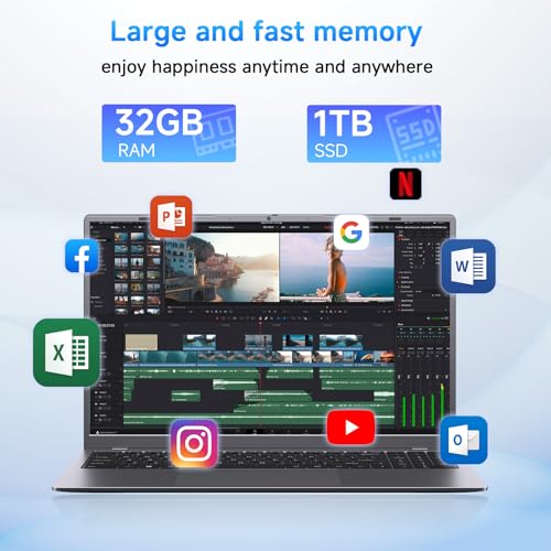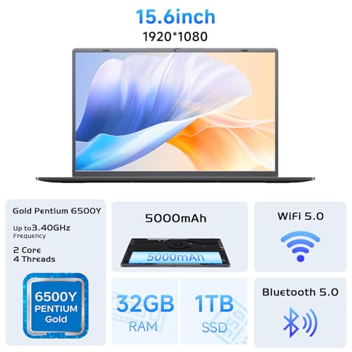 Computadora portátil de 15.6″, 32 GB RAM 1 TB SSD, procesador dorado 6500Y (2 núcleos, hasta 3.4 GHz), pantalla FHD de 1080P, cámara web, WiFi 5, BT5.0, tipo C, gris espacial, computadoras