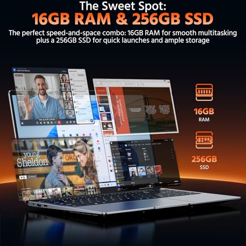 【El punto ideal: 16 GB de RAM y 256 GB SSD】Experimenta el equilibrio perfecto de velocidad y espacio. Con 16 GB de RAM, puede ejecutar sin problemas varias aplicaciones de oficina, docenas de pestañas del navegador y videollamadas simultáneamente. Junto con un SSD rápido de 256 GB, ofrece arranques rápidos, lanzamientos instantáneos de aplicaciones y amplio espacio para todos sus documentos, presentaciones y archivos multimedia. Esta es la configuración ideal para una productividad eficiente y diaria