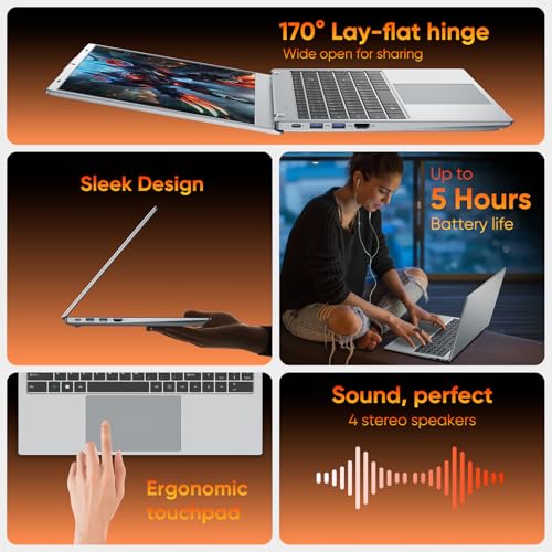 Pantalla FHD vívida de 15,6 pulgadas para trabajar y jugar: disfrute de imágenes impresionantes en este portátil de 15,6 pulgadas. Su panel IPS con resolución Full HD de 1080P ofrece colores vibrantes, ángulos de visión amplios y detalles nítidos. Perfecto para tareas creativas, noches de cine inmersivas o navegación diaria, la pantalla da vida a tu contenido.