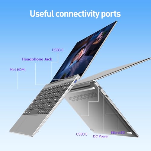 Amplios puertos de conexión: L. a. computadora portátil está equipada con 2 puertos USB 3.0, 1 HDMI, 1 ranura para tarjeta TF, 1 Jake para auriculares, 1 conector de alimentación de CC, este dispositivo ofrece fuertes conexiones inalámbricas con WiFi de 2.4 G+5G y Bluetooth 4.2 para descargas rápidas y transmisión. El teclado ergonómico de tamaño completo y el trackpad grande mejoran tu experiencia de escritura y navegación.