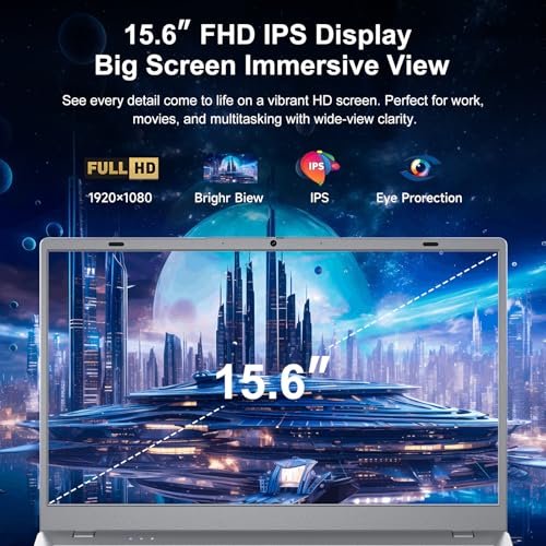 Pantalla de 15.6 pulgadas | Visualización clara y cómoda: esta laptop de 15.6 pulgadas cuenta con un diseño de bisel ultra estrecho que abre tu vista para una experiencia más expansiva. La pantalla IPS Full HD con resolución (1920×1080) ofrece detalles nítidos y colores realistas que permanecen consistentes incluso en ángulos amplios. Ideal para realizar múltiples tareas, ver películas o navegar todos los días, te lleva a la acción y mejora tanto tu productividad.