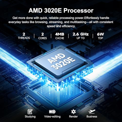 Alimentado por AMD 3020e: esta computadora portátil Akocrsiy cuenta con un procesador AMD 3020e (doble núcleo, doble rosca, hasta 2.6 GHz), equipado con caché inteligente de 4 MB y consumo de energía TDP de 6W-10 W, manejo sin esfuerzo de multitarea, trabajo de oficina y aplicaciones diarias. Desde hojas de cálculo hasta medios de transmisión, disfrute de un rendimiento fluido diseñado específicamente para estudiantes y profesionales de negocios.