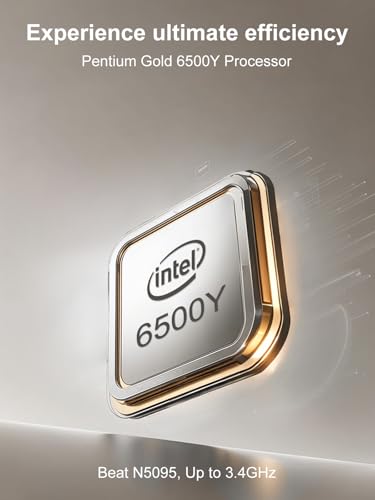 Rendimiento suave: la computadora portátil cuenta con procesador Pentium Gold 6500Y que puede aumentar hasta 3.4 GHz con caché inteligente de 4 hilos y 4 MB, que puede manejar fácilmente tareas de oficina ligeras y aplicaciones diarias, brindando una experiencia fluida.