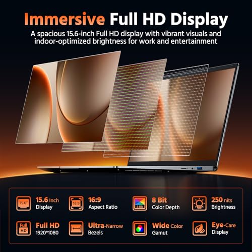 Pantalla 100% sRGB: esta laptop de 15.6 pulgadas cuenta con una pantalla IPS Full HD con una resolución de 1920 x 1080 y una gama de colores alta 100% sRGB, ofreciendo una experiencia visual inmersiva con detalles realistas y colores vibrantes.