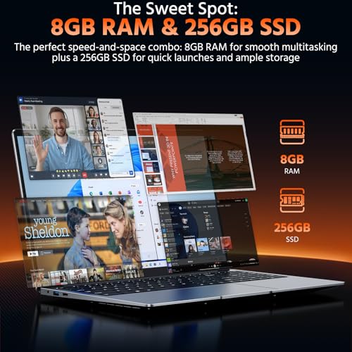 8 GB de RAM y 256 GB de ROM: los angeles computadora portátil viene con 8 GB DDR4, que tiene más espacio y es más rápida que las máquinas equipadas con DDR3 en un 50%. SSD integrado de 256 GB, suficiente almacenamiento para garantizar un sistema clever mientras ahorra más archivos personales.