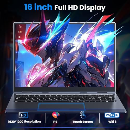 Pantalla táctil FHD y lector de huellas dactilares: la computadora cuenta con una pantalla IPS de 16 pulgadas con una resolución de hasta 1920 x 1200 y 10 puntos táctiles para una navegación fluida. Las computadoras portátiles están equipadas con desbloqueo de huellas dactilares para iniciar sesión instantáneamente sin contraseñas y alta seguridad