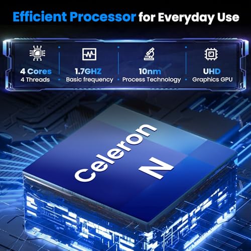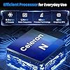 Potente rendimiento: computadora portátil alimentada por un procesador Celeron N95, con una velocidad de reloj que oscila entre 1,7 GHz y 3,4 GHz, lo que garantiza un rendimiento fluido para las tareas diarias. También cuenta con un ventilador montado en la parte inferior para una refrigeración eficiente durante un uso prolongado