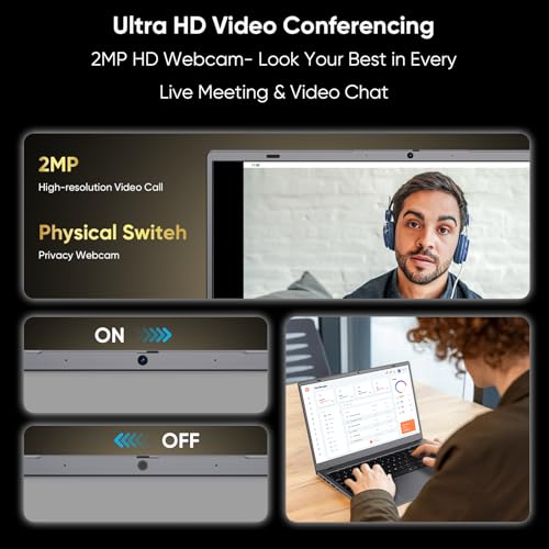 Tu privacidad, protegida: mantén el control con la cámara web integrada de 2 MP y el obturador de privacidad física. Simplemente desliza el obturador para bloquear el objetivo: el indicador rojo te da tranquilidad, sabiendo que estás a salvo del entrada no autorizado. Esta computadora portátil de nivel básico con desbloqueo de huellas dactilares y obturador de privacidad de cámara web ofrece seguridad adicional para videoconferencias comerciales confidenciales, reuniones de proyectos de grupos escolares y uso personal diario.