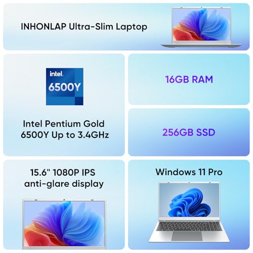 Computadora portátil, pantalla FHD IPS de 15.6 pulgadas, portátil para estudiantes y negocios, 16 GB de RAM 256 GB SSD portátiles, procesador 6500Y (hasta 3.4 GHz), WiFi 5