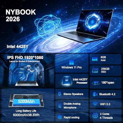 Rendimiento multitarea fluido: con un procesador Intel Pentium 4425Y y Windows 11 Pro preinstalado, este portátil 2026 ofrece velocidad de respuesta para las tareas diarias. Ya sea que se utilice como una computadora portátil para estudiantes para la universidad, una computadora portátil de trabajo para negocios o una computadora doméstica, maneja múltiples aplicaciones de manera eficiente sin ralentizarse.