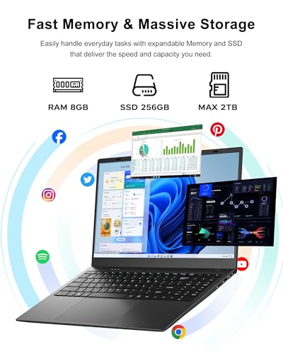 Espacio de almacenamiento mejorado: este portátil tradicional cuenta con 8 GB de RAM, expandible hasta 32 GB, para un rendimiento más rápido del sistema. También viene con un SSD PCIE 3.0 SATA M.2 2280 de alta velocidad de 256 GB que admite NVMe, proporcionando un amplio espacio para almacenar archivos del sistema. Puede ampliar el almacenamiento hasta 512 GB con una tarjeta TF o actualizar el SSD a NVME de 4 TB, lo que garantiza un amplio espacio para ejecutar la mayoría de las aplicaciones y múltiples flujos de trabajo.