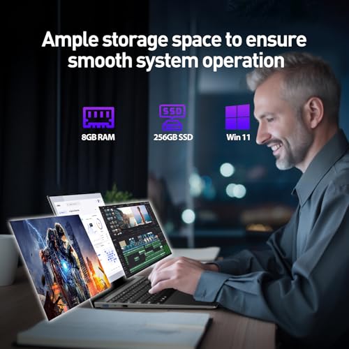 Espacio de almacenamiento mejorado: la laptop Wvryrv viene con 8 GB de RAM para un funcionamiento y respuesta más rápidos del sistema. También viene con un disco duro SSD de 256 GB que proporciona suficiente espacio para almacenar archivos del sistema y grandes juegos. Puede ampliar el almacenamiento a 512 GB utilizando una tarjeta TF o actualizar el SSD a 1 TB para garantizar suficiente espacio para la mayoría de las aplicaciones y múltiples flujos de trabajo.