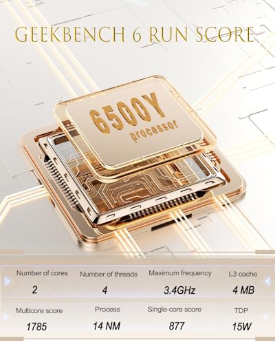 Multitarea suave y rendimiento receptivo: alimentado por Intel Celeron Gold 6500Y (2 núcleos/4 hilos, hasta 3.4 GHz), emparejado con 16 GB de RAM y SSD de alta velocidad de 512 GB, lo que garantiza arranques rápidos, multitarea sin problemas y rendimiento confiable durante todo el día para las necesidades informáticas diarias.