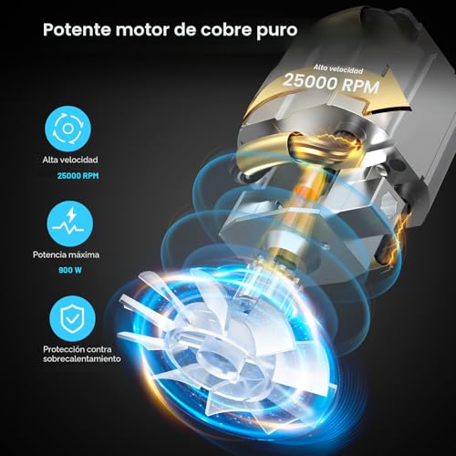 【Motor robusto de cobre completo】 – Un potente motor de hasta 900W con una velocidad de hasta 25000 RPM permite una rotación más rápida de las cuchillas, nuestra licuadora pulveriza sin esfuerzo el hielo, hace puré fino e incluso licua los ingredientes