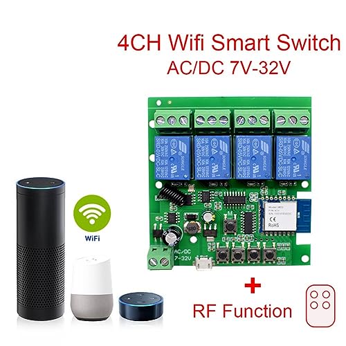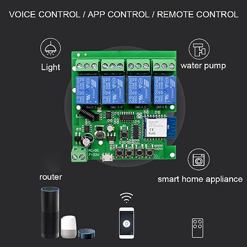 Especificaciones: Daroplo 1 módulo de control remoto Tuya APP Smart Home, interruptor de plástico verde, multicanal, 5 V, 12 V, 24 V, para Alexa Home
