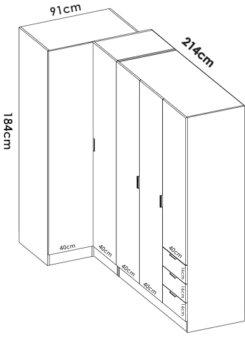 Especificaciones: DEKIT GRUPO RIMOBEL Essen Armario de rincón con cajones – Roble Natural – 184 cm (Alto) x 91 cm (Ancho) x 214 cm (Prof.)