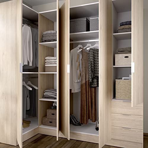 DEKIT GRUPO RIMOBEL Essen Armario de rincón con cajones – Roble Natural – 184 cm (Alto) x 91 cm (Ancho) x 214 cm (Prof.)