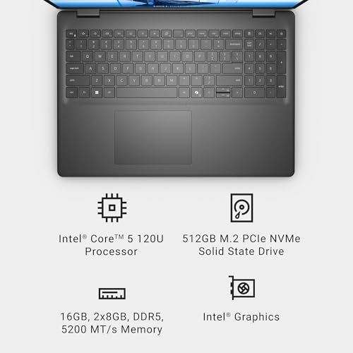 Dell 16 portátiles DC16250-16.0 pulgadas 16:10 FHD+ pantalla táctil, procesador Intel Core 5 120U, 16 GB DDR5 RAM, 512 GB SSD, gráficos Intel, Windows 11 Home, servicio básico in situ de 1 año, negro