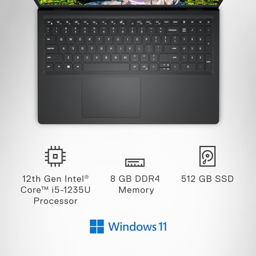 Dell Laptop Inspiron 3520, pantalla FHD de 15.6 pulgadas (1920 x 1080) de 120 Hz, procesador Intel Core i5-1235U, 8 GB de RAM DDR4, SSD de 512 GB, WiFi 5, modo Windows 11 S, negro carbón