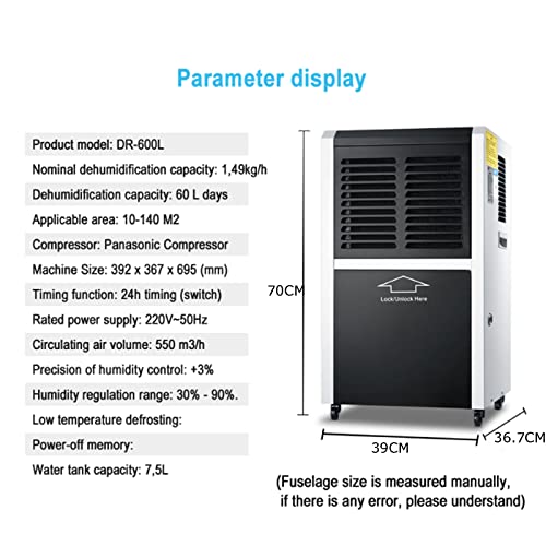 【Deshumidificadores de alta eficiencia】 Rueda universal de 360 °, fácil de mover la máquina, no hay problema para subir las escaleras. Compresor de marca importado, potencia de alta eficiencia, tiene protección contra sobrecarga, función de absorción de golpes y reducción de ruido. Ruido: inferior a 43 dB.