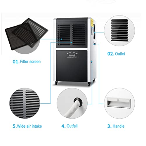 Especificaciones: Deshumidificador de alta potencia de almacén industrial, deshumidificador inteligente del aire 2500 m².Ft 106 Pint, purificador de iones negativos