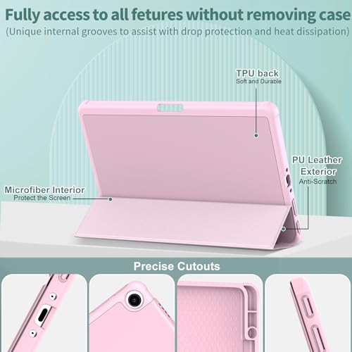 Especificaciones: DJ&RPPQ – Funda para tablet de 11 pulgadas, funda inteligente con soporte triple y parte trasera de policarbonato duro y encendido automático/apagado incompatible con TCL Sony, color rosa