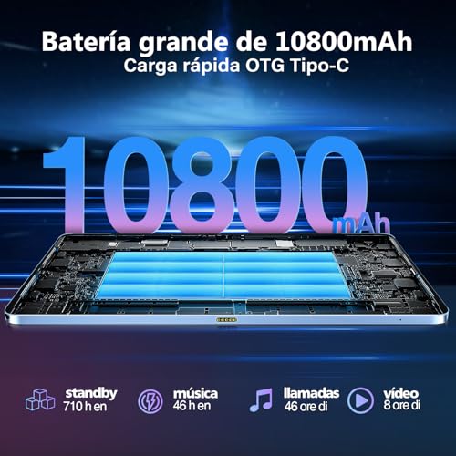 【Batería duradera de 10800 mAh】 Las android 14 tablets DOOGEE T40 Pro están equipada con una batería de 10800 mAh, que tiene una vida útil más larga y satisface sus necesidades diarias. También admite carga rápida de 18W, que puede alcanzar una velocidad de carga del 70% en 1 hora. Además, la android tablet admite la función de carga inversa OTG, que puede usarse para cargar de emergencia teléfonos móviles, computadoras mientras viaja.
