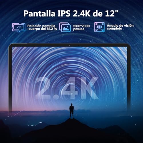 【Patalla de 12 pulgadas 2.4K】La tablet utiliza una pantalla IPS de 12 pulgadas con resolución de 1200×2000 y relación pantalla-cuerpo de hasta el 87,5%. Hay múltiples modos de lectura y protección ocular, y la pantalla es agradable a la vista, por lo que puede usarla durante mucho tiempo sin cansarse. También la tablet 12 pulgadas es compatible con la gama de colores DCI-P3, que ofrece colores intensos y vivos y una inmersión perfecta para cada experiencia.