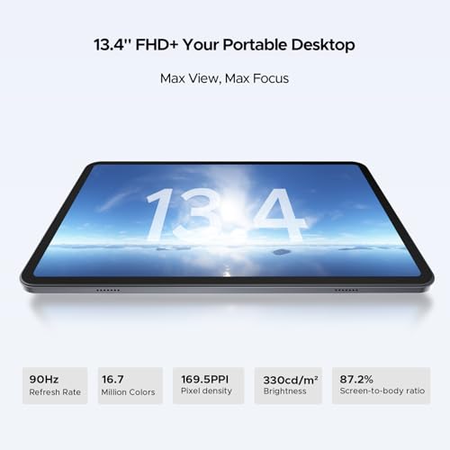 La tableta DOOGEE Tab G6 Max de 13 pulgadas ofrece una experiencia de usuario única. Disfruta de una experiencia de visualización similar al cine en la impresionante pantalla IPS de 13.4 pulgadas con resolución Full HD+ y una frecuencia de actualización suave de 90 Hz. El diseño de metal ultrafino de 0.303 in y la relación pantalla-cuerpo del 86,4% lo hacen tan elegante como inmersivo. Ideal para transmitir películas, jugar juegos o multitarea con imágenes suaves. Ligero y elegante, este tabet de juego es el compañero perfecto para el entretenimiento sobre la marcha.