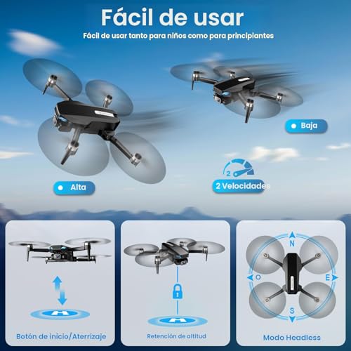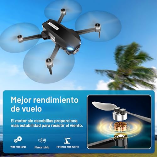 Especificaciones: Dron con cámara, 2K HD FPV Drone con motor sin escobillas, retención de altitud, selfie gesto, despegue/aterrizaje con una tecla, giros 3D, vuelo Waypoint, 2 baterías, mini drones plegables para niños