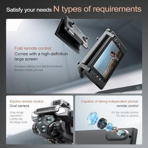 Especificaciones: Drone M66 con nuevo control remoto plegable con pantalla, dos baterías, motor sin escobillas, retención de altitud, despegue y aterrizaje con una tecla, con funda de transporte negra para exteriores.
