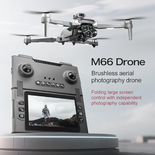 Drone M66 con nuevo control remoto plegable con pantalla, dos baterías, motor sin escobillas, retención de altitud, despegue y aterrizaje con una tecla, con funda de transporte negra para exteriores.
