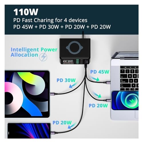 EDEDE Cargador USB C Multiple, Tipo Carga rápida del Paladio QC3.0 del Cargador del teléfono de W USB de los Puertos Multi inalámbricos de Charing de C, Universal Cargador USB C
