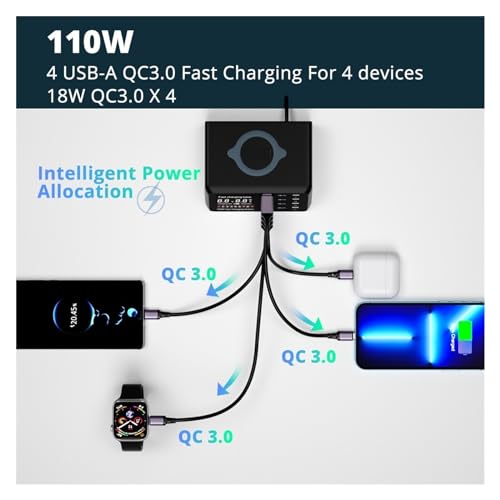 Especificaciones: EDEDE Cargador USB C Multiple, Tipo Carga rápida del Paladio QC3.0 del Cargador del teléfono de W USB de los Puertos Multi inalámbricos de Charing de C, Universal Cargador USB C
