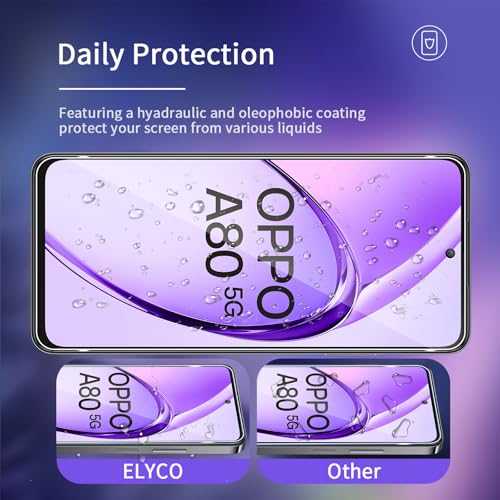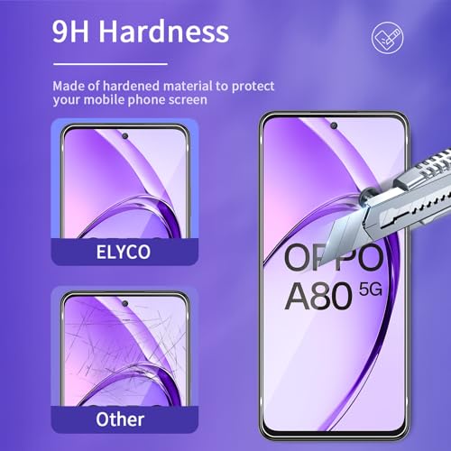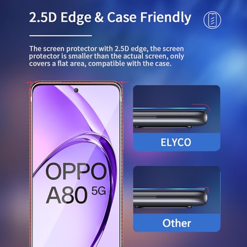 Especificaciones: ELYCO Cristal Templado para OPPO A80 5G, 2 Piezas Protector de Pantalla + 2 Piezas Protector de Lente Cámara, 9H Dureza Anti-Rasguños Protector Pantalla, Sin Burbujas HD Vidrio Templado
