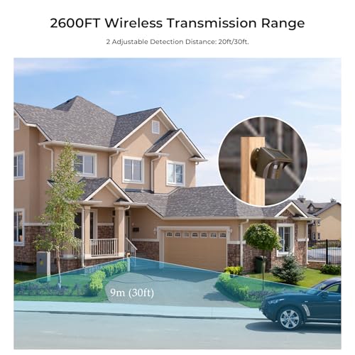 Fácil de instalar: la guía de inicio rápido te permite operar en cuestión de minutos. Puede ampliar hasta 4 sensores y receptores ilimitados para una cobertura completa de su perímetro. Alarma de entrada inalámbrica Detecta el movimiento de humanos, automóviles y animales grandes. Hay 4 campanas divertidas y únicas para elegir. Haga coincidir diferentes campanadas con diferentes sensores alrededor de su propiedad para diferenciar dónde se detecta el movimiento inalámbrico de la alarma de entrada.