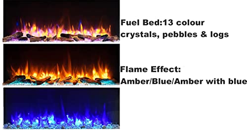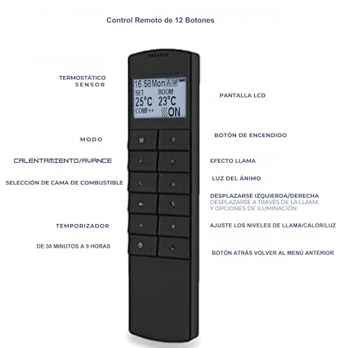 Ambiente personalizado: 13 opciones de iluminación ambiental y base de combustible (cristales, guijarros y leños realistas incluidos).