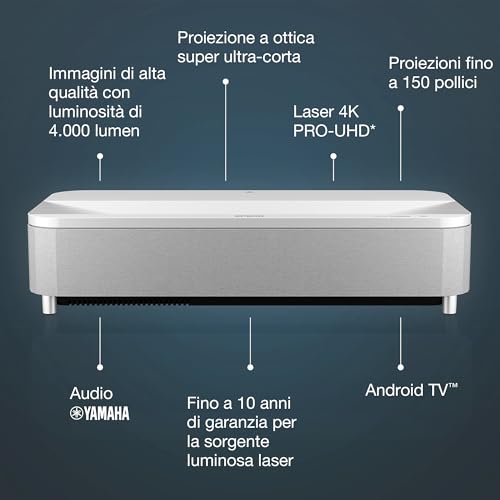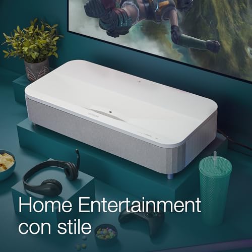 Epson EH-LS800W – Proyector láser Pro-UHD 4K 16:9, óptica Ultra Corta EpiqVision, Smart Android TV, 4000 lúmenes, Bluetooth/HDMI/USB/WLAN, Chromecast, sorround 3D Yamaha, Proyección máx. 150″ Blanco